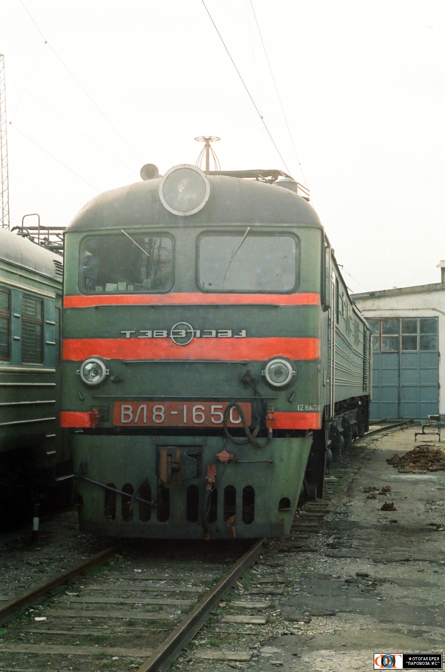 | Электровоз ВЛ8-1650, локомотивное депо Туапсе, Краснодарский край Автор: Маслов Михаил | Фото сделано 15.III.1997, опубликовано 6.X.2017.
