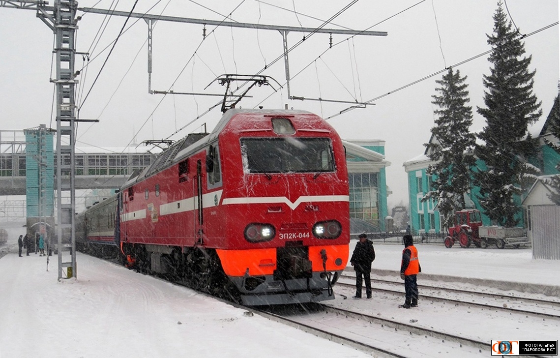 | Электровоз ЭП2К-044 на ст. Омск-Пассажирский, Омская обл. Автор: Лысенко А. | Фото сделано 7.I.2017, опубликовано 11.XII.2017.