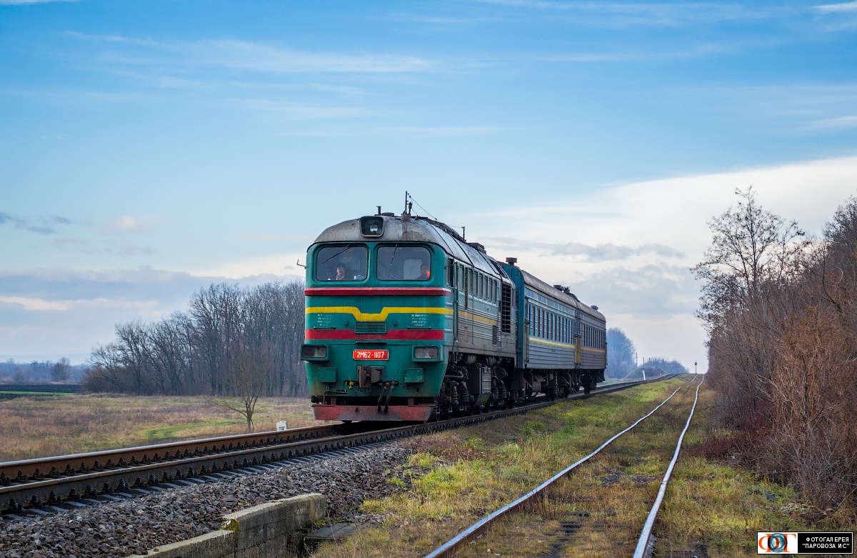 | Тепловоз 2М62-1107Б с грузо-пассажирским поездом на перегоне Мамалыга - Пост 61 км, Черновицкая обл. Автор: ВикторБГ | Фото сделано 16.XII.2017, опубликовано 22.I.2018.
