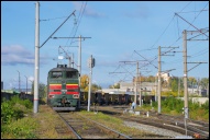 | Тепловоз ЧМЭ3-2113 с крытым вагоном на подъездном пути от станции Волжск к Волжскому гидролизно-дрожжевому заводу, Марий Эл Автор: albo | Фото сделано 11.VI.2018, опубликовано 15.VI.2018.
