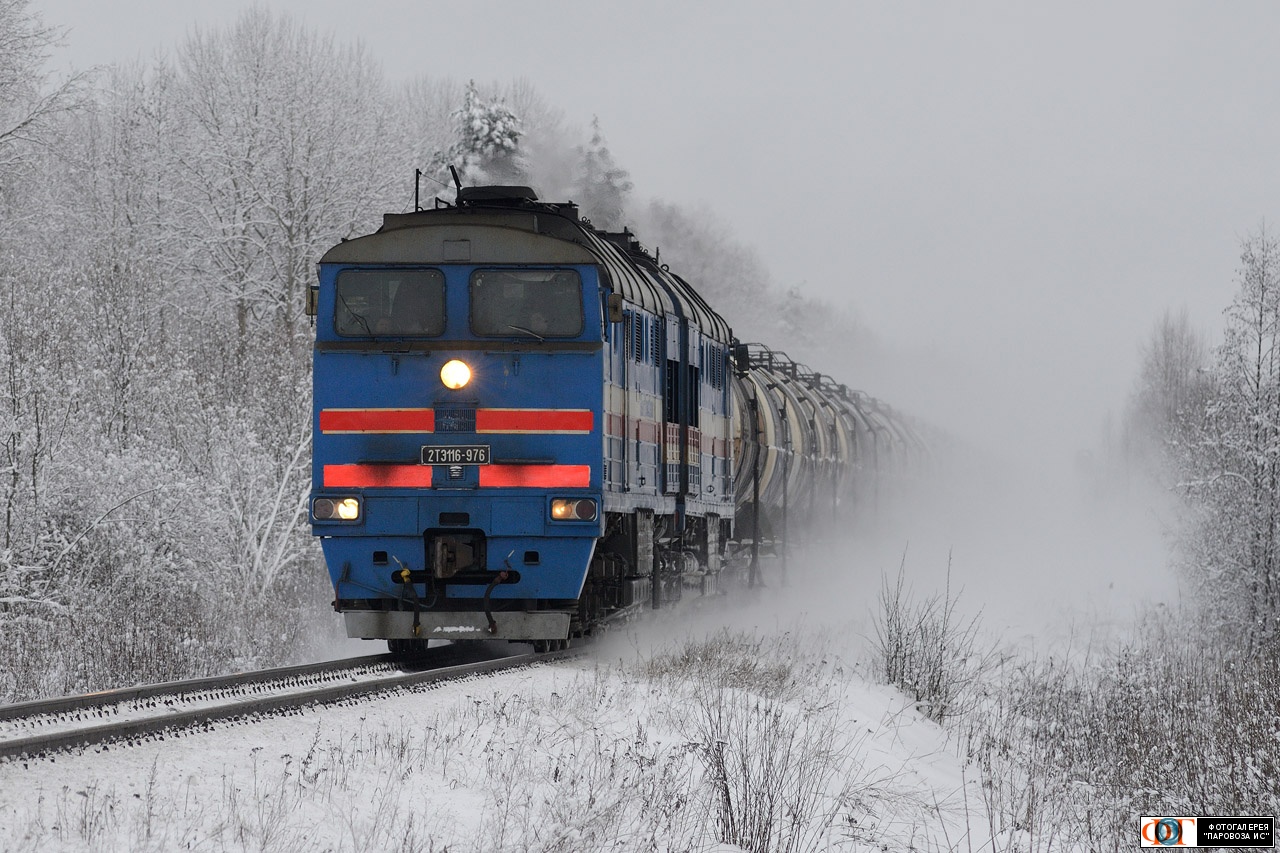 | Тепловоз 2ТЭ116-976 с грузовым поездом у пл. Редья, перегон Парфино - Старая Русса, Новгородская обл. Автор: OldNick | Фото сделано 5.I.2019, опубликовано 31.I.2019.