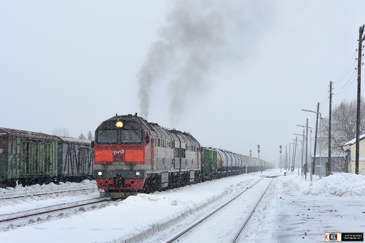 | Тепловоз 2ТЭ116У-0040 с грузовым поездом прибывает на ст. Батецкая, Новгородская обл. Автор: OldNick | Фото сделано 11.II.2019, опубликовано 21.II.2019.