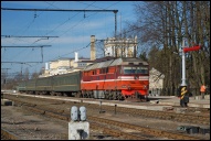| Тепловоз 2ТЭ116-1565 с грузовым поездом прибывает на ст. Луга-I, Ленинградская обл. Автор: OldNick | Фото сделано 24.X.2019, опубликовано 26.X.2019.
