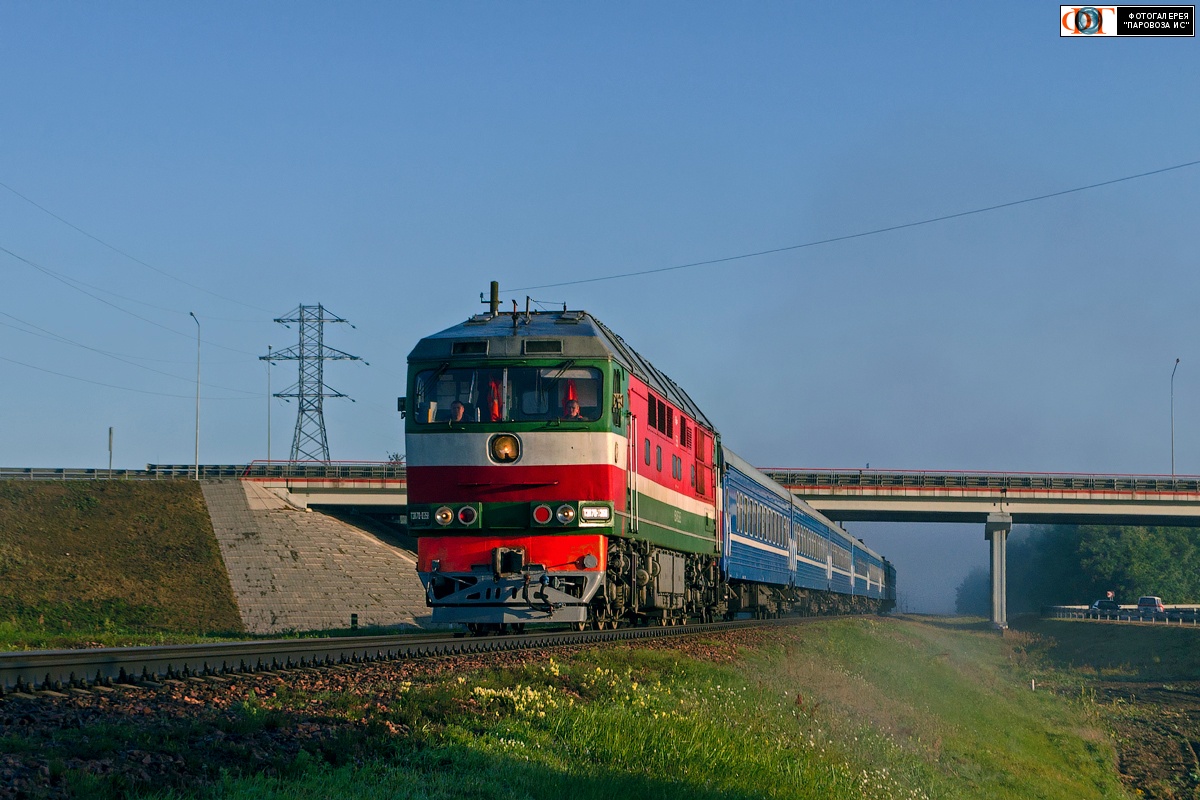 | Тепловоз ТЭП70-0358 с фирменным поездом "Сож" № 55 Москва - Гомель, перегон разъезд Лукское - Жлобин-Северный, Гомельская обл. Автор: Евгений Пашковский | Фото сделано 23.IX.2019, опубликовано 26.X.2019.