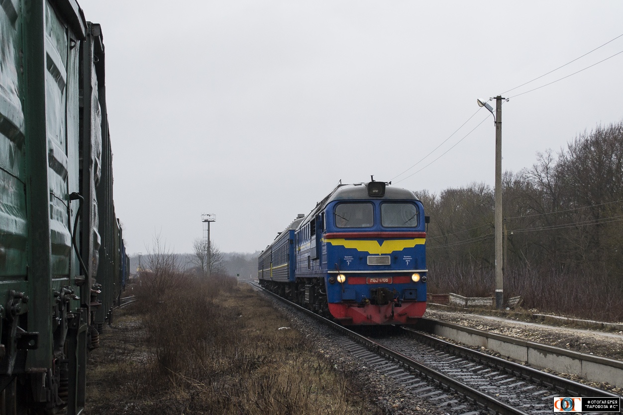 | Тепловоз М62-1708 с пригородным поездом на ст. Негин (о.п. Сахкамень), Хмельницкая обл. Автор: ВикторБГ | Фото сделано 7.III.2020, опубликовано 9.III.2020.