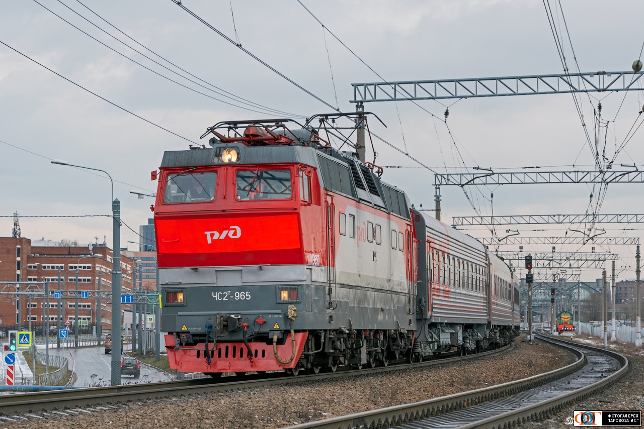 | Электровоз ЧС2Т-965 с пассажирским поездом, станция Дача Долгорукова, Санкт-Петербург Автор: тишкин роман петрович | Фото сделано 2.III.2020, опубликовано 14.III.2020.