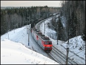 | Электровоз 2ЭС10-006 с грузовым поездом следует по перегону Сарга - Шаля, Свердловская обл. Автор: Данил Козлов | Фото сделано 23.II.2020, опубликовано 30.III.2020.