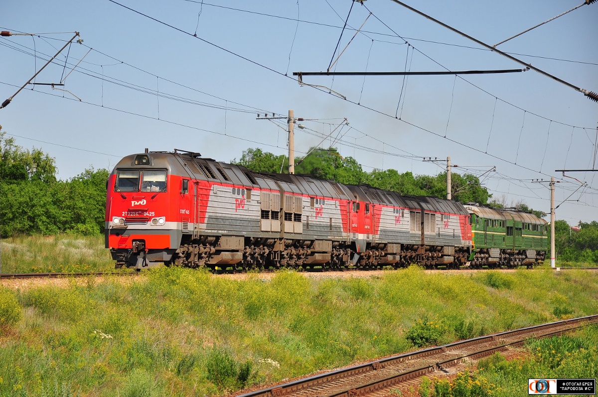 | Тепловозы 2ТЭ25КМ-0425, 2ТЭ25КМ-0159, 2ТЭ116-1595, перегон Волгоград-II - Садовая, Волгоградская обл. Автор: Андрей Платонов | Фото сделано 16.VI.2020, опубликовано 17.VI.2020.