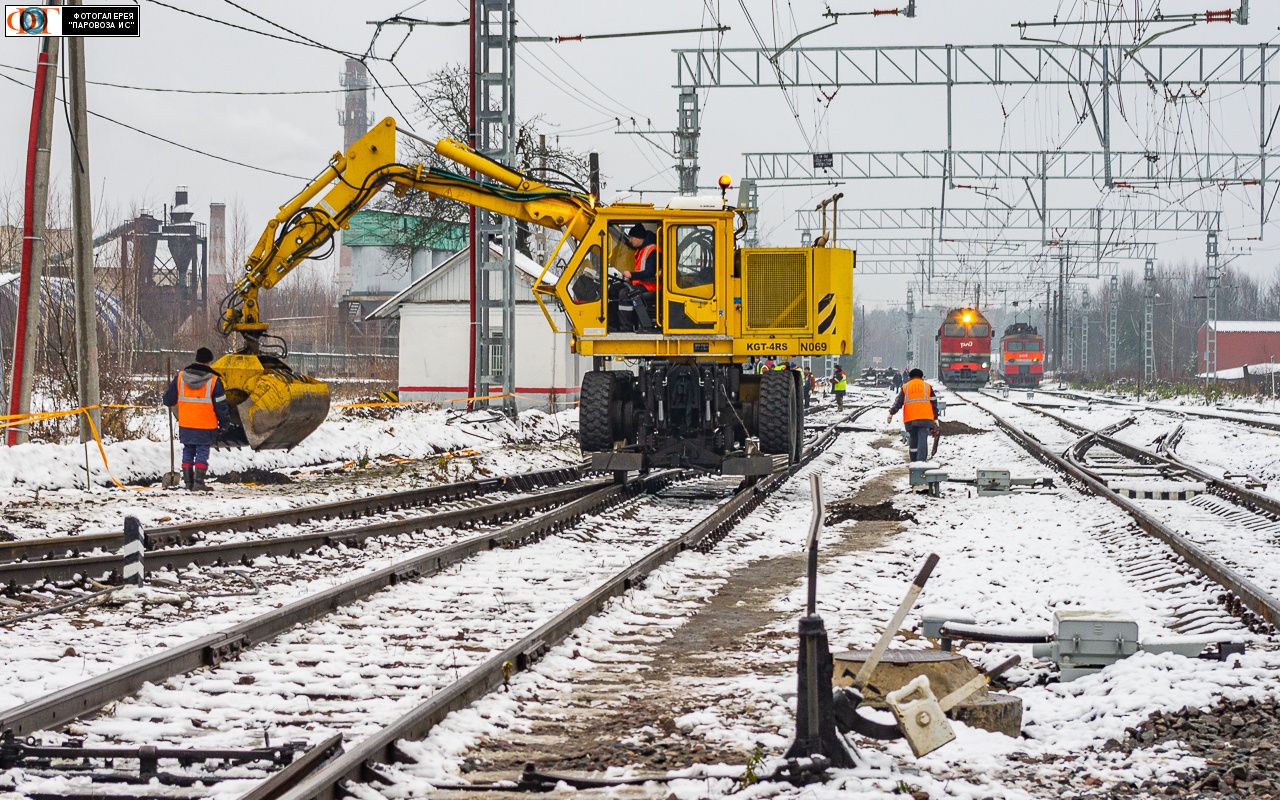 | Экскаватор на комбинированном ходу KGT-4RS-069, тепловоз 2ТЭ116УД-019 и электровоз ВЛ11.8-699/667Б на станции Савёлово, Тверская обл. Автор: Const | Фото сделано 28.XI.2020, опубликовано 8.XII.2020.