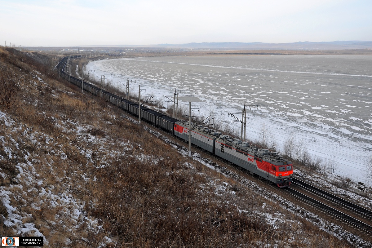 | Электровоз ВЛ85-246 с грузовым поездом на перегоне Кадала - Чита-I, Забайкальский край Автор: Spv | Фото сделано 22.XII.2020, опубликовано 27.II.2021.
