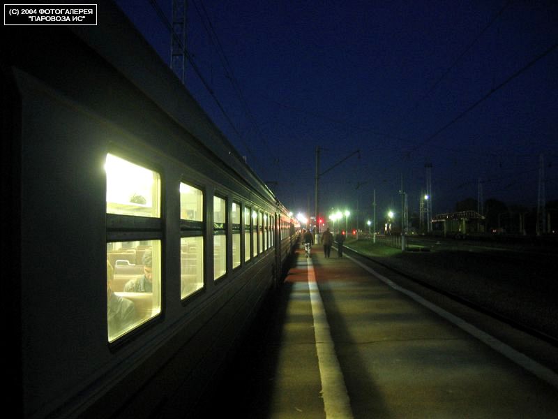 | Электропоезд { EMU train }, ст. Черусти { Cherusti station }, Московская обл. Автор: Белов С. | Фото сделано IX.2004, опубликовано 1.X.2004.