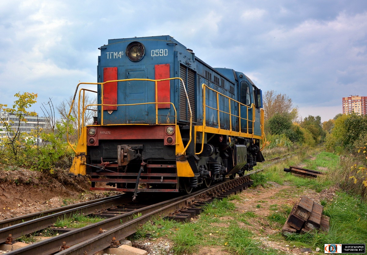 | Тепловоз ТГМ4Б-0590 на подъездном пути ООО "Загорский лакокрасочный завод" от станции Сергиев Посад, Московская обл. Автор: Островский Кирилл | Фото сделано 13.IX.2021, опубликовано 14.IX.2021.