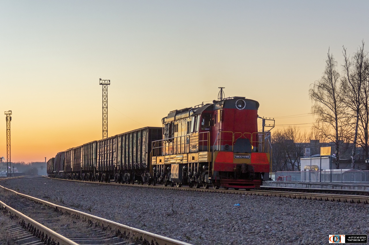 | Тепловоз ЧМЭ3-6166, ст. Цон, Орловская обл. Автор: Sherman | Фото сделано 9.XII.2020, опубликовано 20.I.2022.