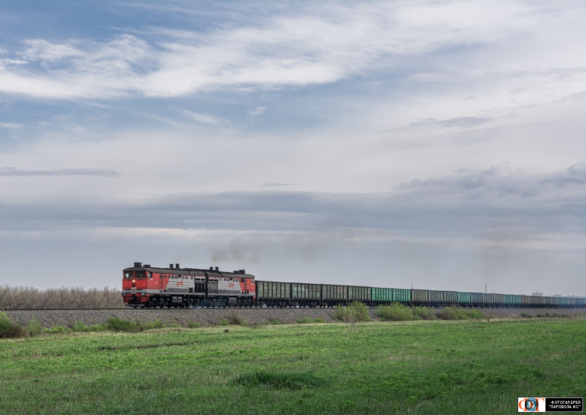 | Тепловоз 2ТЭ10М-2925 с грузовым поездом на перегоне Сибай - Альмухамедово, Башкортостан Автор: Марс | Фото сделано 18.V.2018, опубликовано 20.VI.2022.