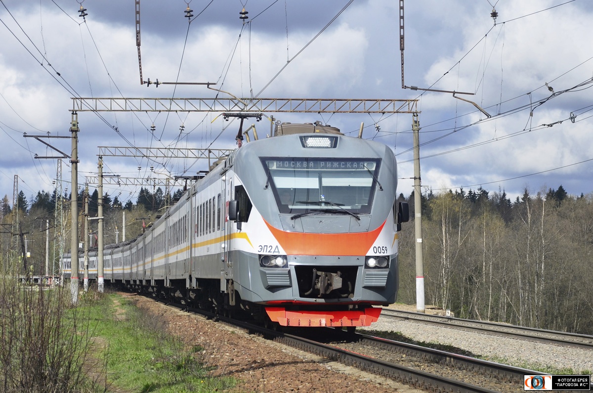 | Электропоезд ЭП2Д-0059 на перегоне Чисмена - Румянцево, Московская обл. Автор: sanya | Фото сделано 9.V.2022, опубликовано 24.VIII.2022.