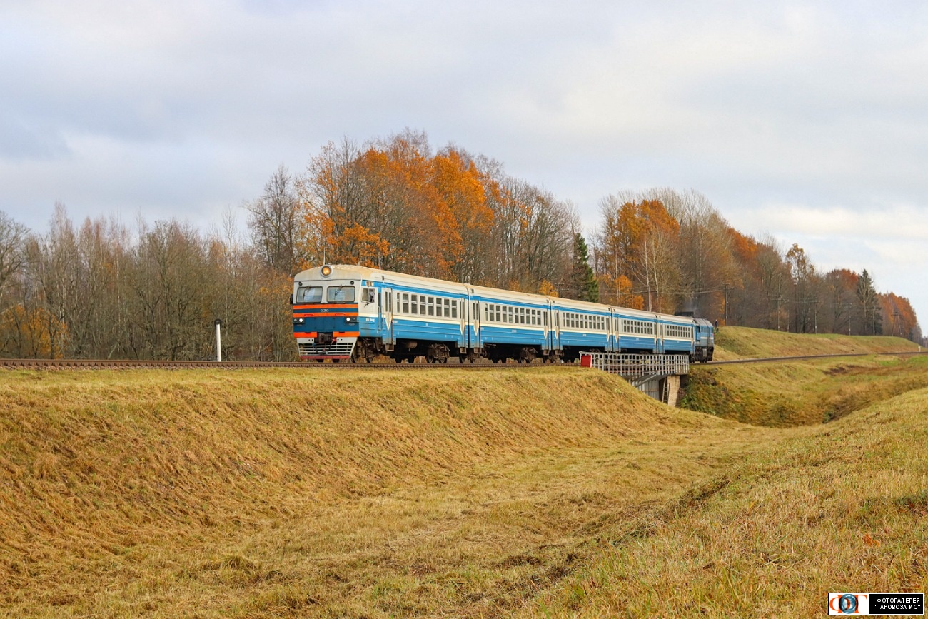| Дизель-поезда ДДБ1-020 и ДДБ1-002, тепловоз 2М62У-0271А на перегоне Горяны - Фомино, Витебская обл. Автор: Илья | Фото сделано 5.XI.2023, опубликовано 27.XI.2023.