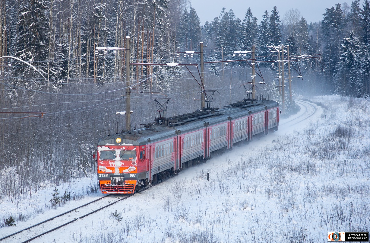 | Электропоезд ЭТ2М-097, перегон Петрокрепость - Невская Дубровка, Ленинградская обл. Автор: electron | Фото сделано 13.II.2021, опубликовано 15.XII.2023.
