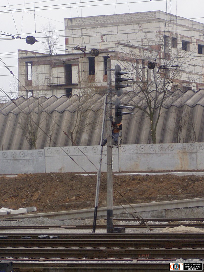 | Обслуживание светофора на ст. Джанкой, Крым Автор: Helgi | Фото сделано 3.IV.2007, опубликовано 10.IV.2007.