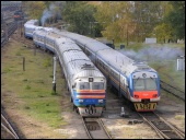 | Электропоезда ЭПМ-012/009 на станции Гомель, Гомельская обл. Автор: Lag | Фото сделано 9.V.2025, опубликовано 19.V.2025.