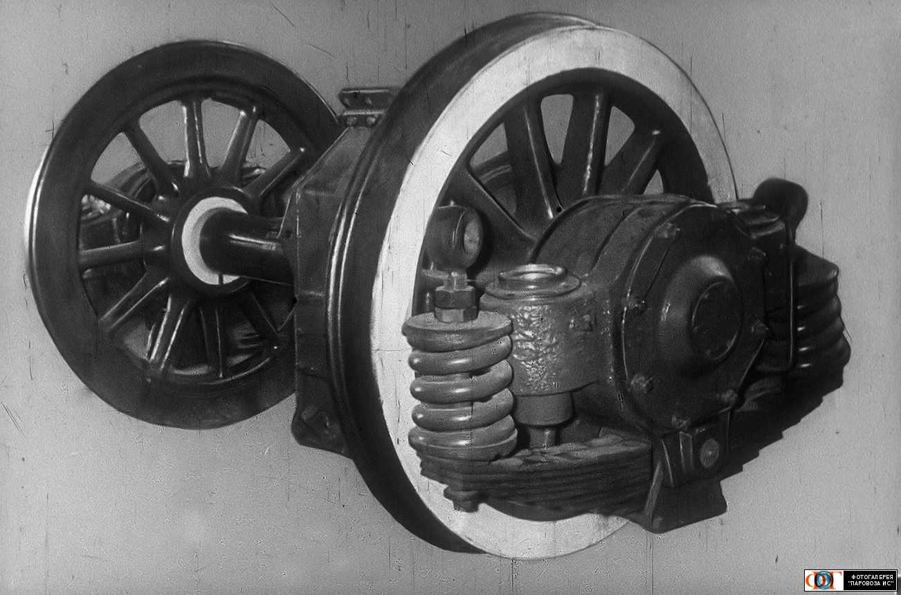 | Колёсная пара электровоза ЧС2 в сборе с буксами и тяговым редуктором, Москва Автор: VL60 (колл.) | Фото сделано 1964 г, опубликовано 27.VIII.2025.