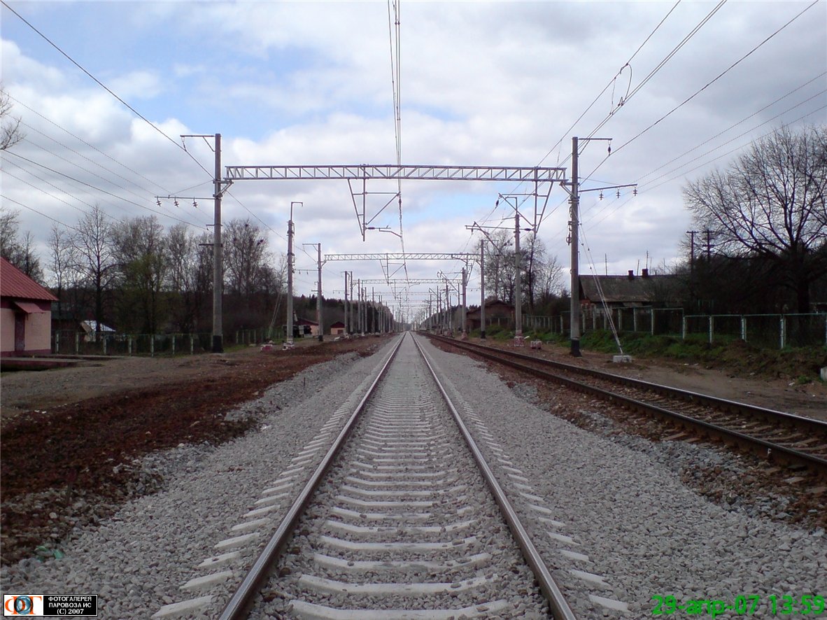 | Спрямлённый главный путь на Москву, о.п. Покровка, Московская обл. Автор: Т-воз | Фото сделано 29.IV.2007, опубликовано 1.V.2007.
