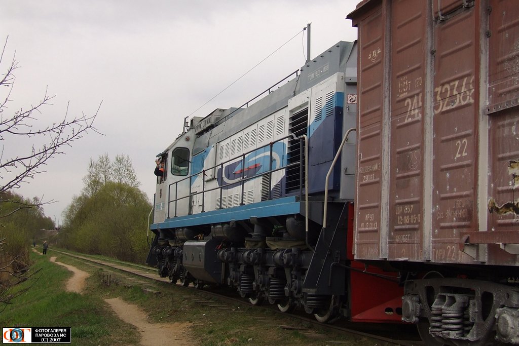 | Тепловоз ТЭМ18Д-088 на подъездных путях заводов "Тверьстеклопластик" и "Тверской завод сварных конструкций", вид в сторону ст. Дорошиха, г. Тверь, Тверская обл. Автор: Янис Витолс | Фото сделано 7.V.2007, опубликовано 15.V.2007.