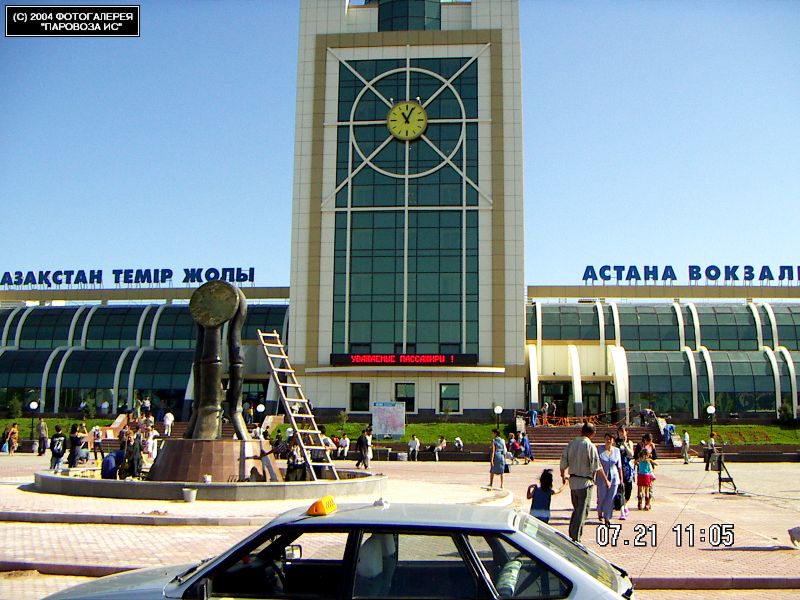 | Вокзал Астана { Astana station }, Астана Автор: Пепеляев Георгий | Фото сделано 1.VII.2004, опубликовано 3.XI.2004.