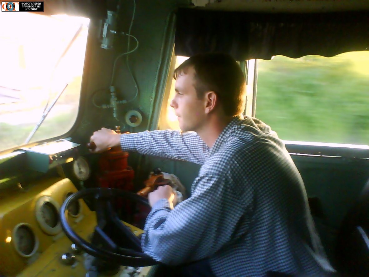 - А кто фотографировал помощника? Третий? В задней кабина кран усл.№394 ставится в шестое положение и на манометре уравнительного резервуара стрелка показыват 0, а на 5,2-5,3атм. Выражение лица у помощника НЕ наигренное. Такое выражение лица бывает когда доверяют вести локомотив, человеку не увереному в себе из-за малого опыта управлением такой техники. Механик дверил ему управление в первый раз, или второй... . Так и меня учили управлять локомотивом! И сам-же механик сфоткал его. -- Малиновский А.