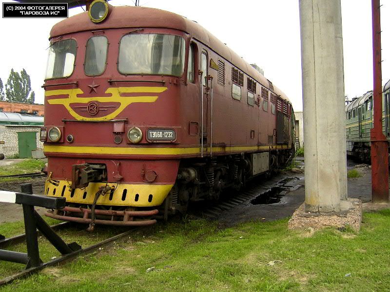 | Тепловоз ТЭП60-1232 { TEP60-1232 diesel shunter }, депо Елец { Elets shed }, Липецкая обл. Автор: Плотников П. | Фото сделано 24.VII.2004, опубликовано 17.XII.2004.