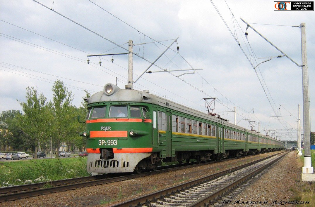 | Электропоезд ЭР2-993, перегон Лигово - Стрельна, Санкт-Петербург Автор: ALX aka Алексей Лаушкин | Фото сделано 14.VIII.2006, опубликовано 24.VIII.2007.