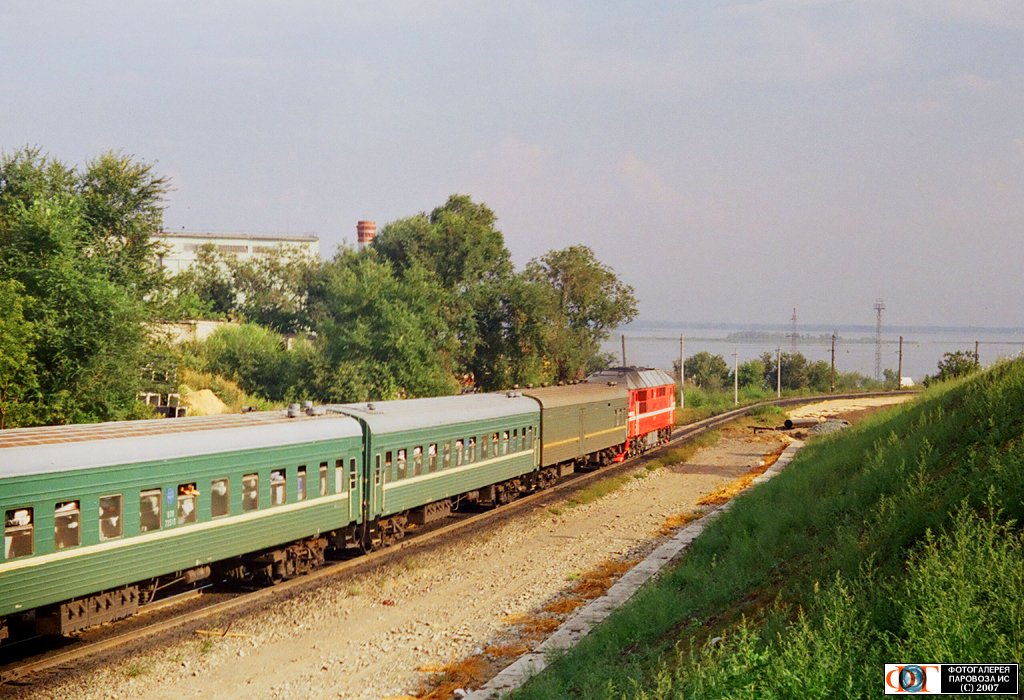 | Пассажирский поезд Свердловск – Симферополь с тепловозом ТЭП70-0415, перегон Сызрань-I – Сызрань-Город, Самарская обл. Автор: Said Brown | Фото сделано 24.VIII.2007, опубликовано 1.IX.2007.