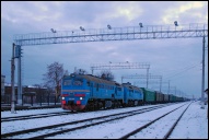 | Тепловоз 2М62У-0223 { 2M62U-0223 diesel locomotive }, Бранево { Braniewo }, Польша Автор: Охмански Лешек | Фото сделано 15.VIII.2003, опубликовано 5.I.2005.