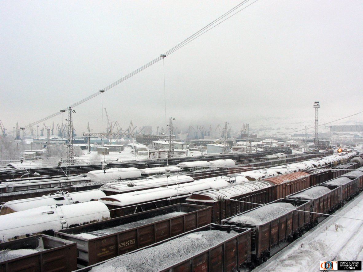 | Станция Мурманск с видом на морской порт, Мурманская обл. Автор: Yury V Popkov | Фото сделано 26.I.2007, опубликовано 27.IX.2007.