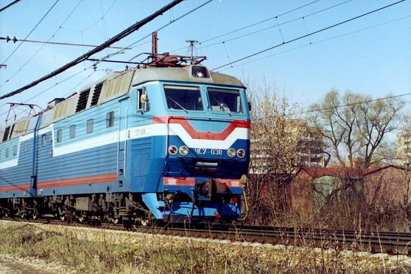 | Электровоз ЧС7-038 { ChS7-038 electric locomotive }, участок Одинцово - Баковка { Odintsovo-Bakovka stretch }, Московская обл. Автор: ХанСоло | Фото сделано 5.VI.2003, опубликовано 14.VII.2003.