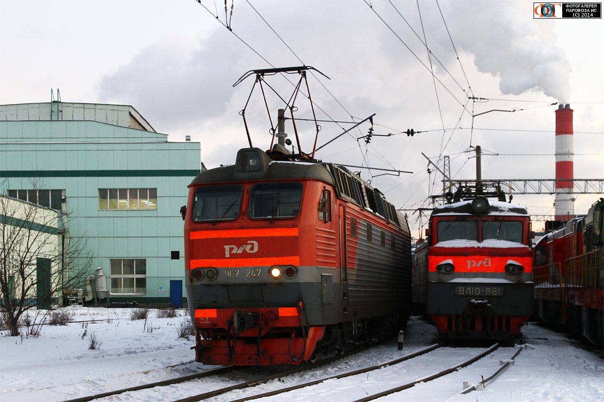 | Электровоз ЧС7-247, депо Москва-Сортировочная-Рязанская, Москва Автор: Дмитрий Зю. | Фото сделано 26.I.2014, опубликовано 27.I.2014.