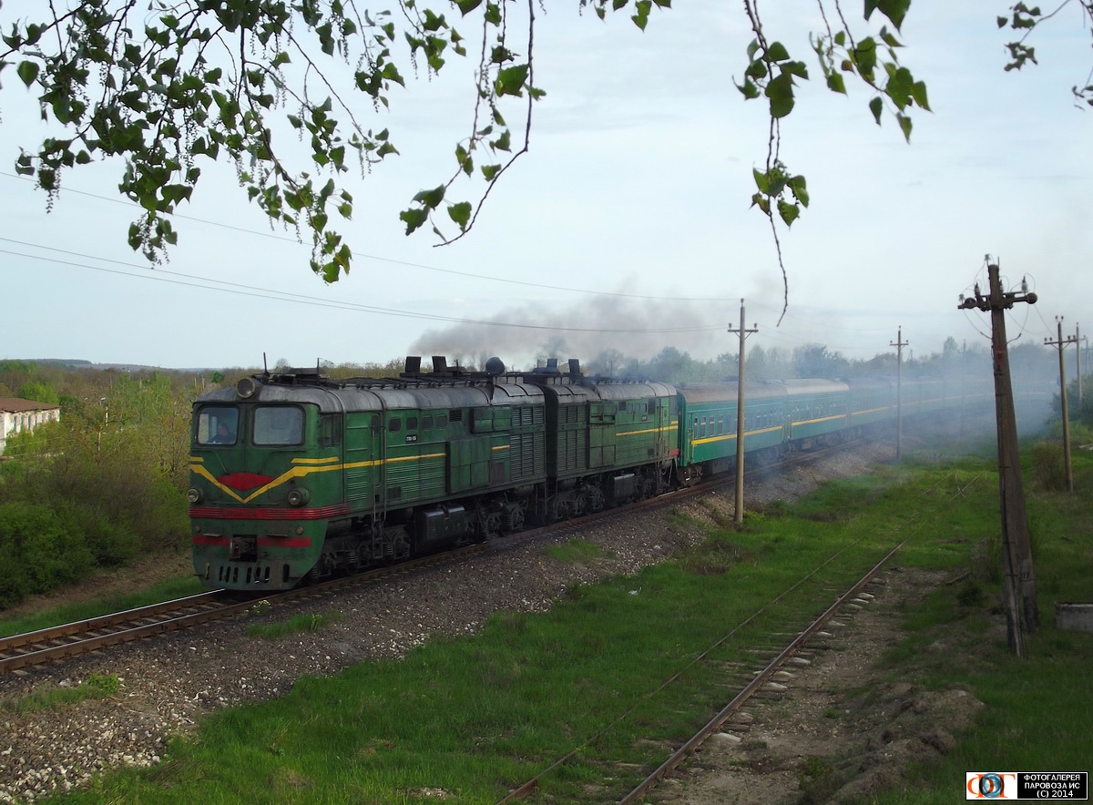 | Тепловоз 2ТЭ10Л-1250 с пассажирским поездом, перегон Окница - Гырбова, Молдавия Автор: Андрей | Фото сделано 28.IV.2014, опубликовано 15.VI.2014.