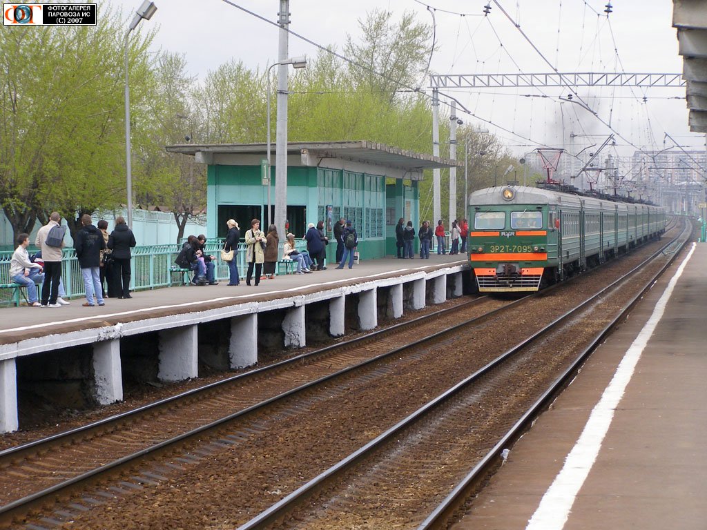 Электричка даёт "медведя" (ЭР2Т-7095 на пл. Тестовская), Москва