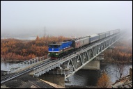 | Тепловоз 2ТЭ10МПGE-2837 (секция Б) c поездом №324 Нерюнгри - Томмот на мосту через р. Чульман, перегон Чульман - Чульбасс, АЯМ, 23.IX.2011 Игорь Жгутов