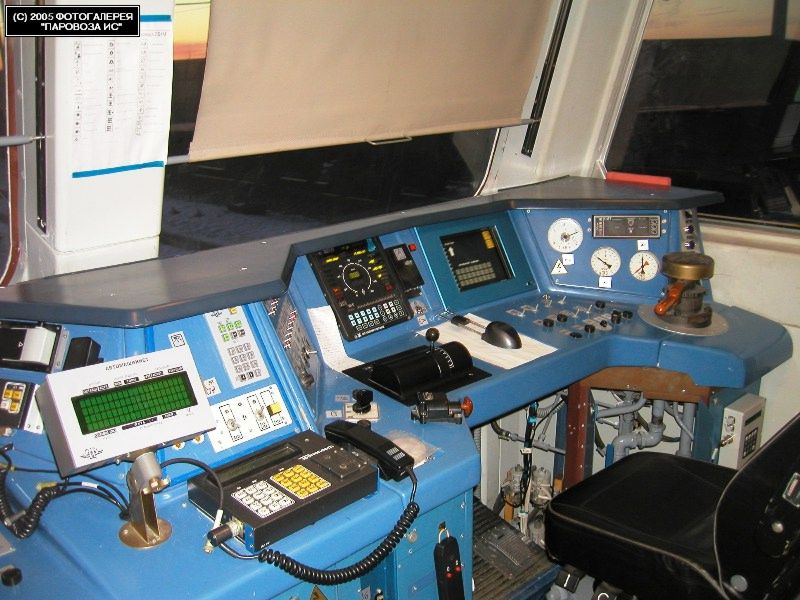 | Электропоезд ЭД4Э-0002, кабина { ED4E-0002 EMU train, cockpit }, Щербинка { Scherbinka }, Москва Автор: Илья Антоновский | Фото сделано 18.I.2005, опубликовано 20.I.2005.