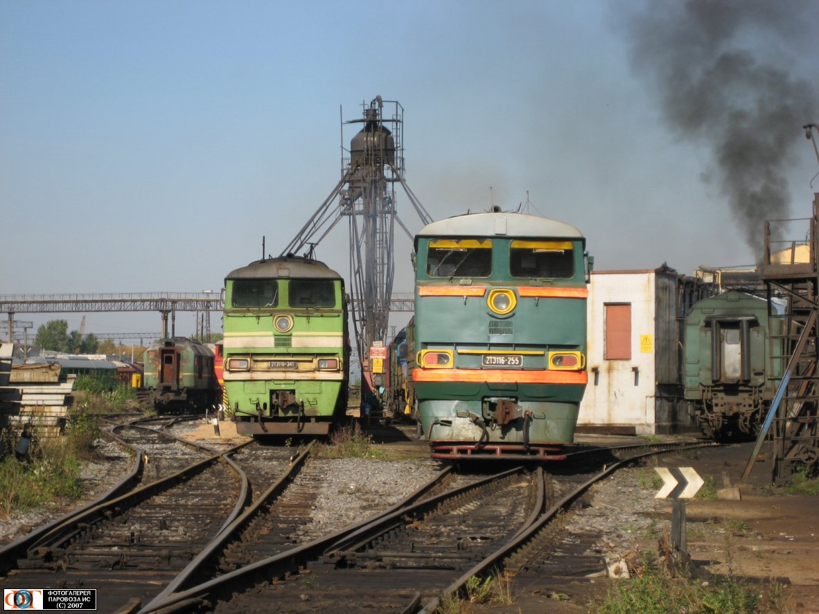 | "Братья по разуму". Тепловозы 2ТЭ116-341 и 2ТЭ116-255, депо СПб-Витебский, Санкт-Петербург Автор: electron | Фото сделано 25.IX.2007, опубликовано 1.XII.2007.
