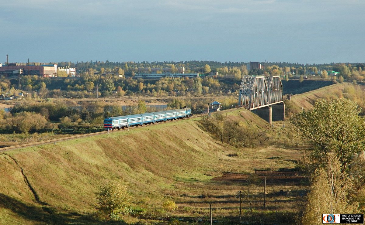 Дизель-поезд ДРБ1 идет к мосту через Днепр, перегон Могилев-III - Луполово