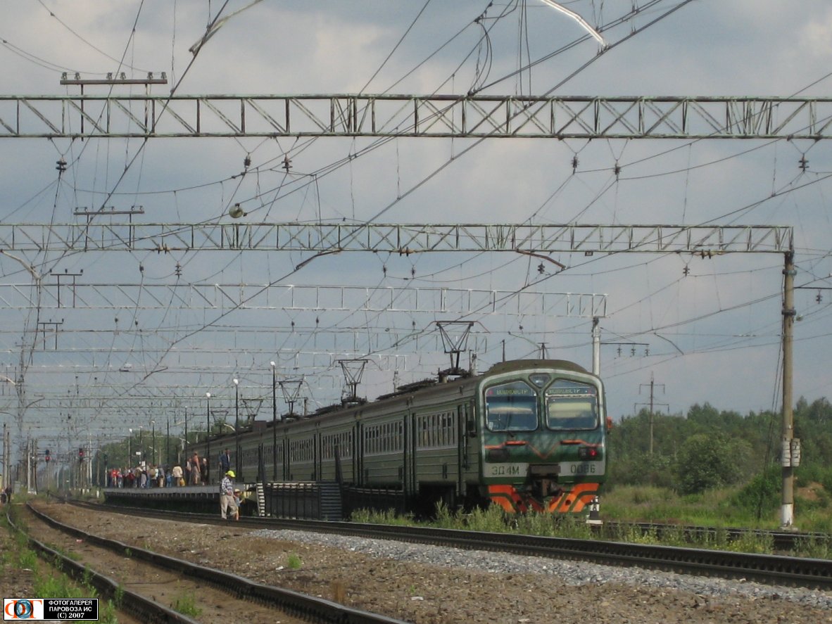 | Электропоезд ЭД4М-0086 прибывает на ст. Пупышево, Ленинградская обл. Автор: electron | Фото сделано 27.VII.2007, опубликовано 3.I.2008.