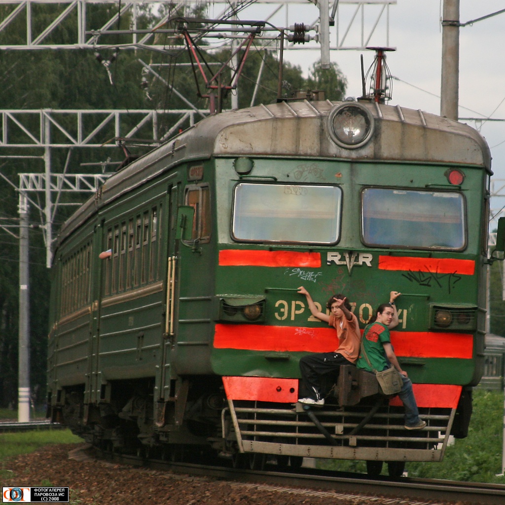- Какойто электропоезд убитый:голова обрисованая,флюриисцентные полосы наведены как попало,буферные погнутые,козырьки верхних хвостовых выломаны и главное,минус лок.бригаде,концевые рукава не на кронштейнах-как в Грузии. -- ЭР9