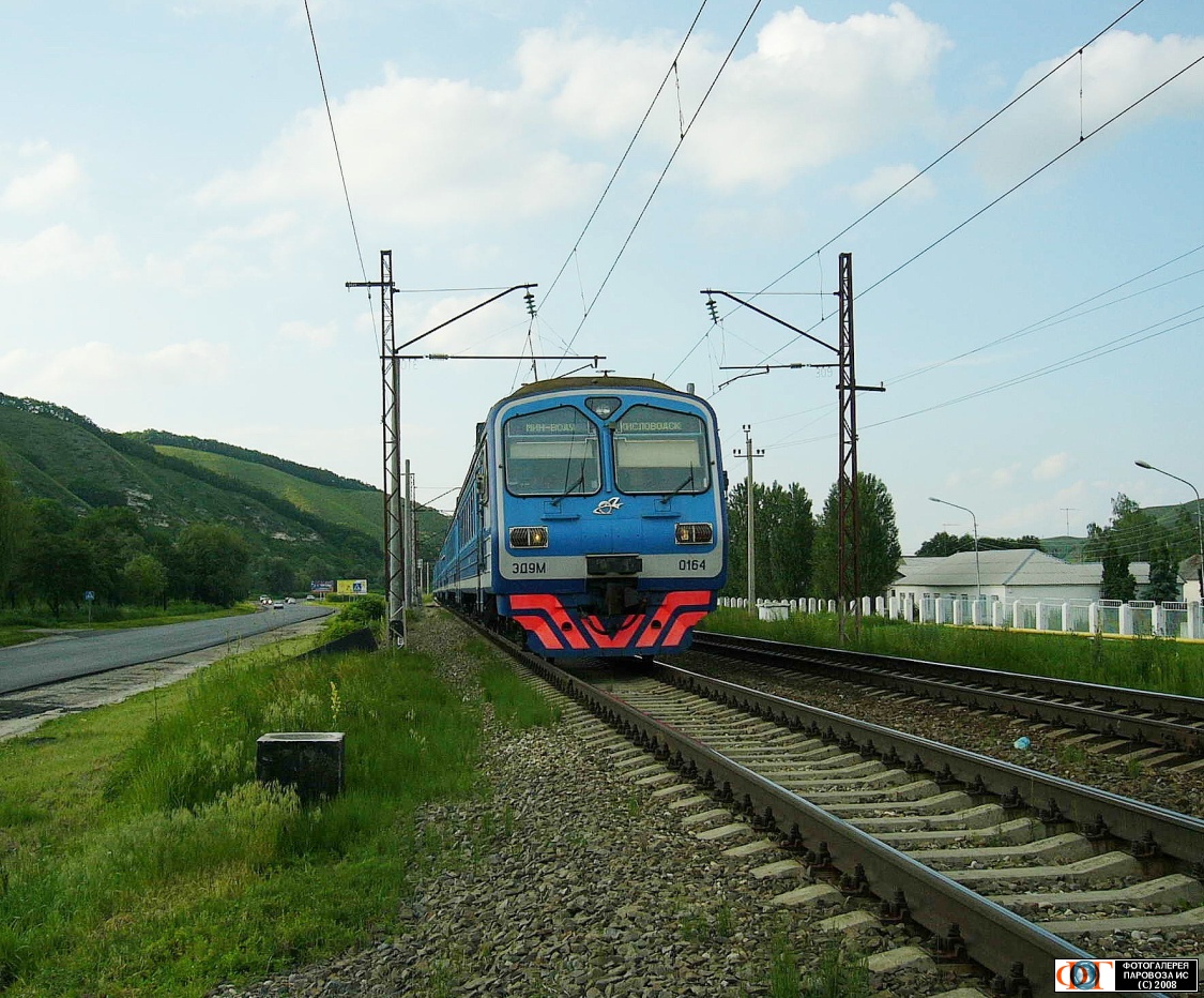| Электропоезд ЭД9М-0164 на перегоне Ессентуки - Подкумок, Ставропольский край Автор: Мегапупс | Фото сделано 14.VI.2008, опубликовано 12.VII.2008.
