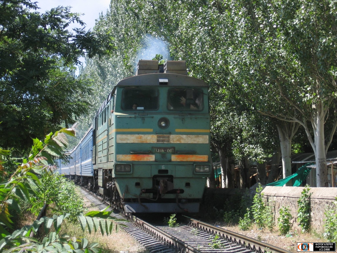 | Тепловоз 2ТЭ116-1500 секция Б с поездом №486 Феодосия - Минск, Крым Автор: КОНСТАНТИН | Фото сделано 5.VII.2008, опубликовано 31.VII.2008.
