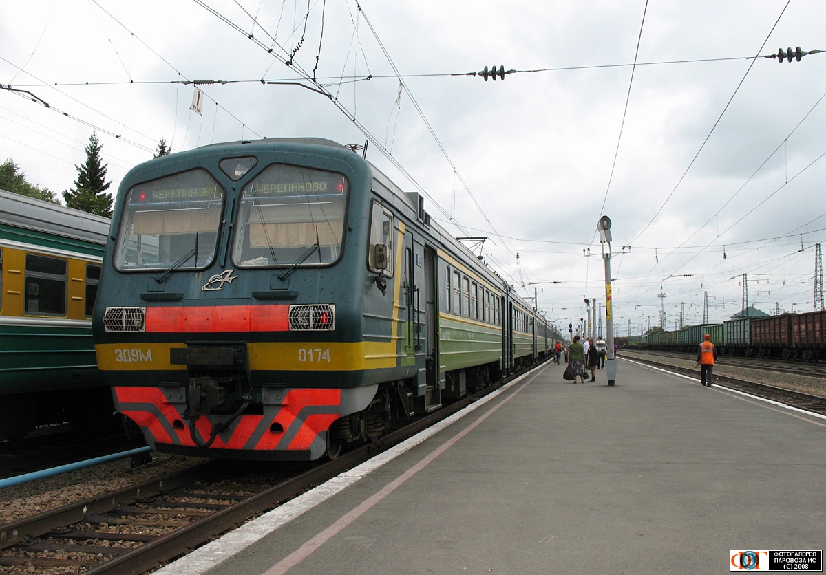 | Электропоезд ЭД9М-0174, станция стыкования Черепаново, Новосибирская обл. Автор: Турист | Фото сделано 2.VIII.2008, опубликовано 7.XI.2008.
