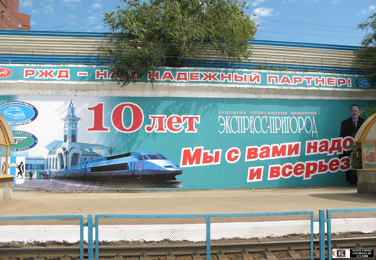 "Мы с вами надолго и всерьёз!": рекламный плакат одной из лучших в России пригородной пассажирской компании, пл. Речной Вокзал, ст. Новосибирск-Южный, Новосибирская обл.
