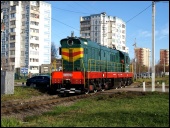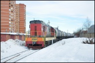 | Тепловозы ЧМЭ3-2336 и ЧМЭ3-6159, подъездной путь от ст. Лобня, Московская обл. Автор: Олег В. | Фото сделано 18.VIII.2008, опубликовано 8.XII.2008.