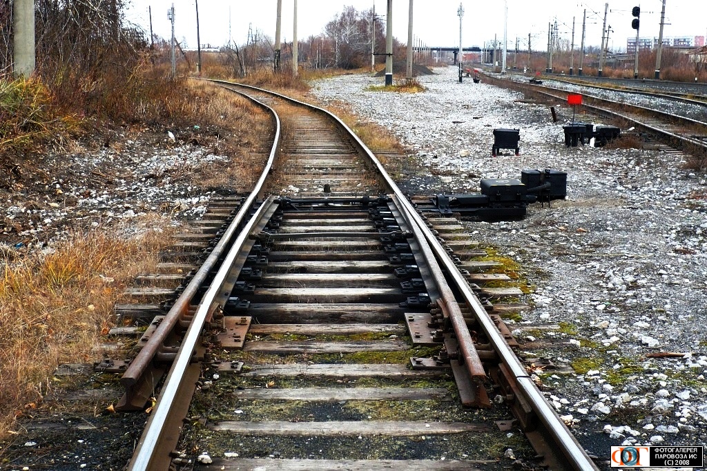 | Сбрасывающая стрелка, подъездной путь на бывший завода "КСК" со ст. Ленинск-Кузнецкий-I, Зап-Сиб.ж.д., Кемеровская обл. Автор: *****Андрей***** | Фото сделано 14.X.2008, опубликовано 29.XII.2008.