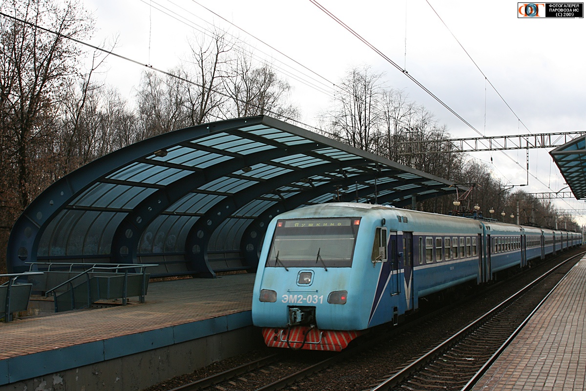 | Электропоезд ЭМ2-031/029 у платформы Маленковская, перегон Москва-Пассажирская-Ярославская - Лосиноостровская, Москва Автор: Максимов Юрий | Фото сделано 16.XI.2008, опубликовано 8.III.2009.
